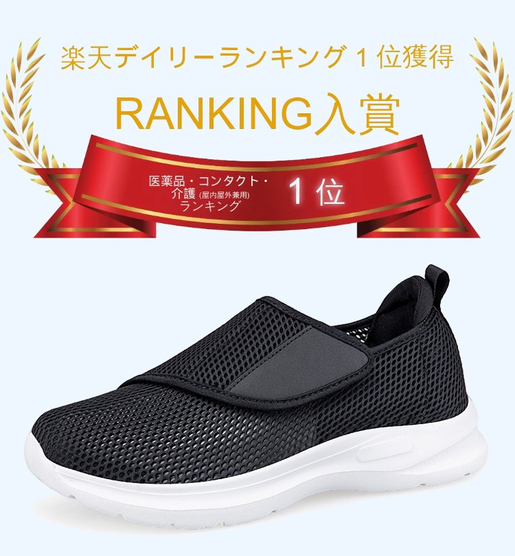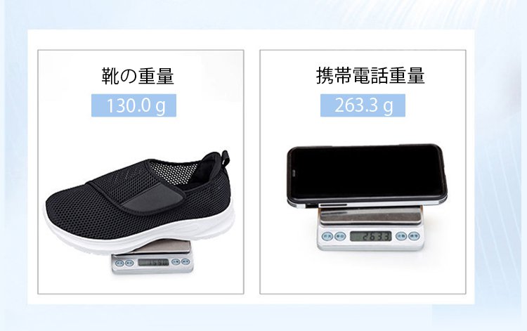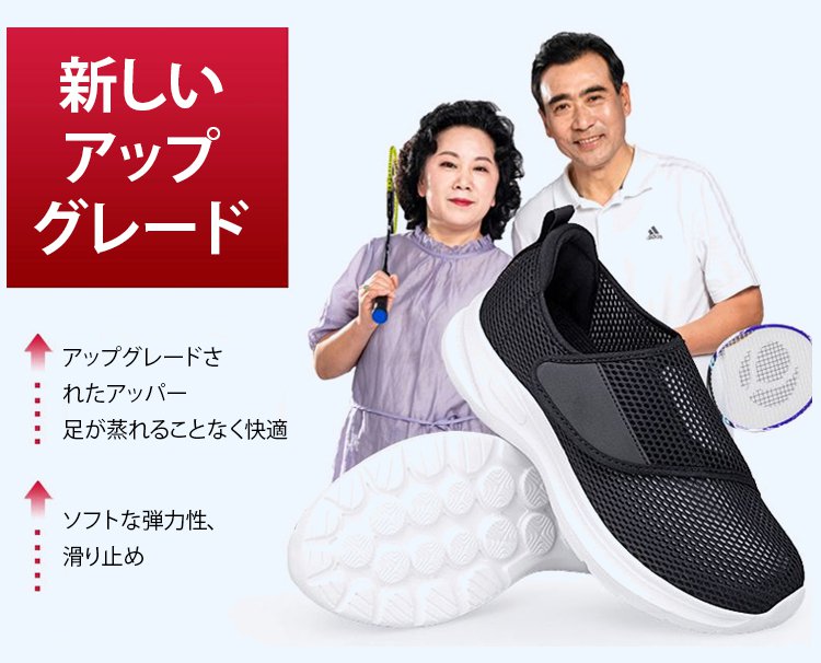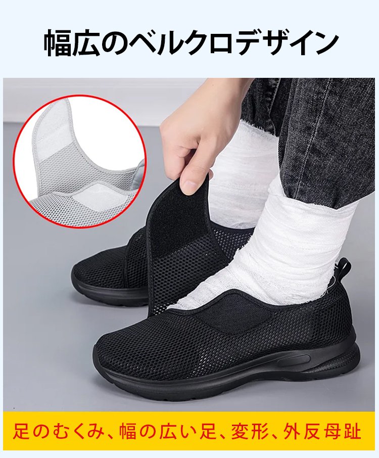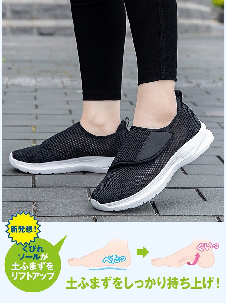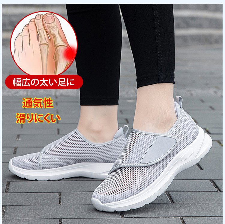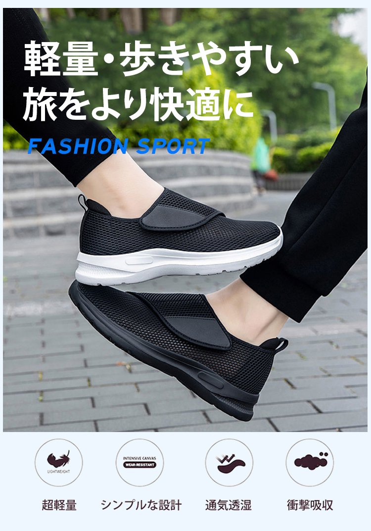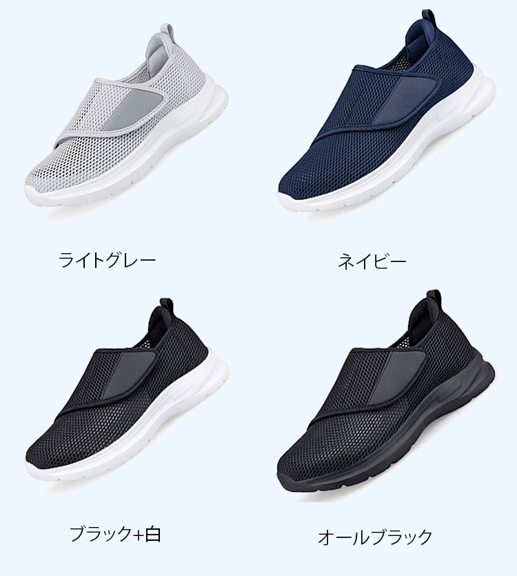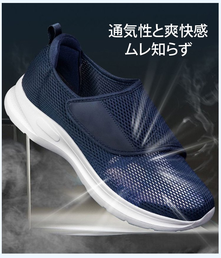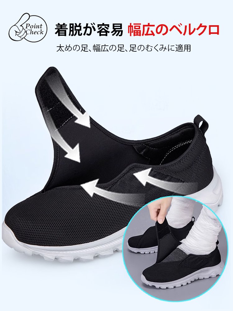 メッシュ製簡単着脱ベルクロ開閉ウォーキングシューズ