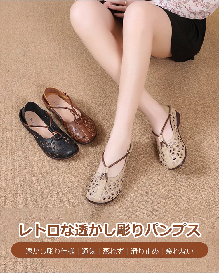 レトロな透かし彫りパンプス